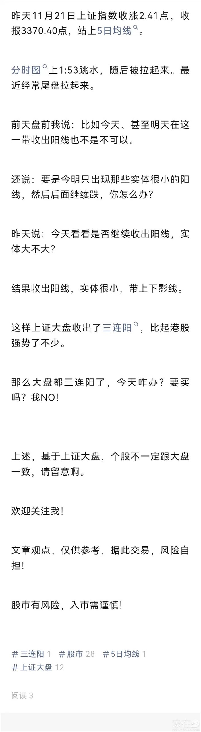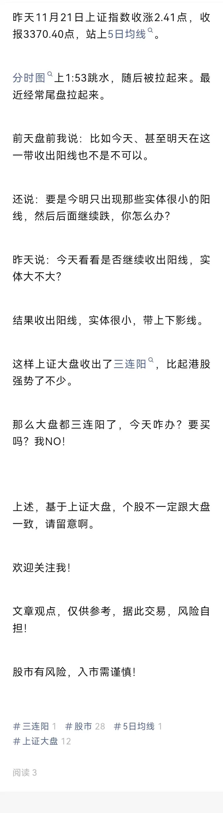 大盘都三连阳了,今天咋办?