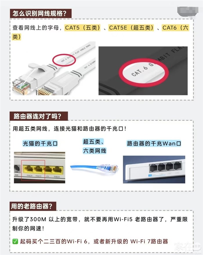 5、网线,不要小看光猫和路由器相连那一小段网线,选好网线用好它。才可以网速达标