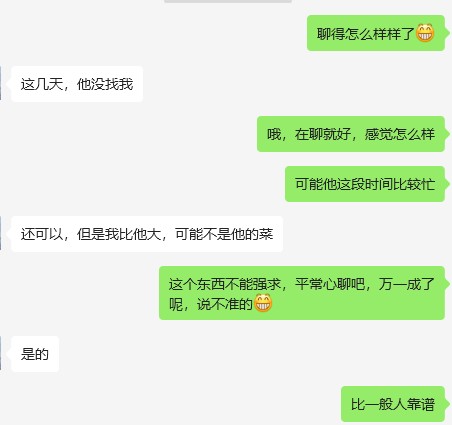 引用3楼xian1988的发言:一姑娘大龄了前几天新认识一姐姐说有好几位老同事儿子需要对象我赶紧亘古年联系姑娘说:也不一定有结果,还浪费时间 我:我了Q