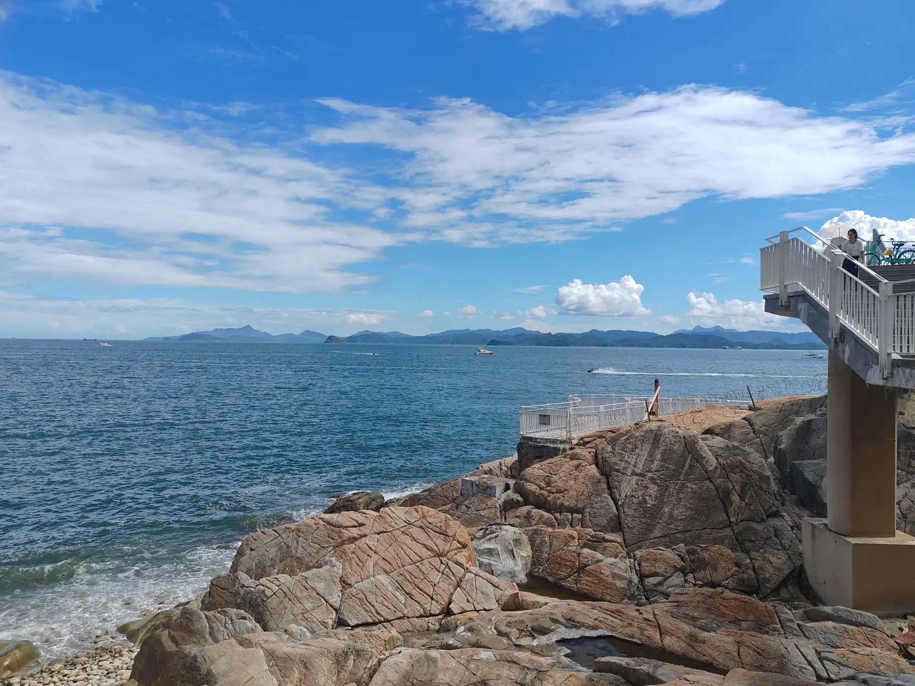杨梅坑属于南澳,杨梅坑除了在海边骑车,有三玩:1、乘快艇飞驰穿梭于海浪上,2、租渔船出海,3、登山溯溪。