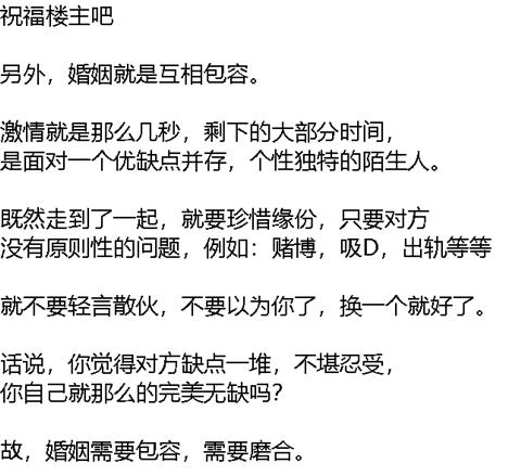 引用为什么不好取名的发言:婚姻需要磨合,更需要包容引用13楼为什么不好取名的发言:我不知这段话,触动了板猪的那根神经,竟然妙删,只好再次敲一遍。。。。
