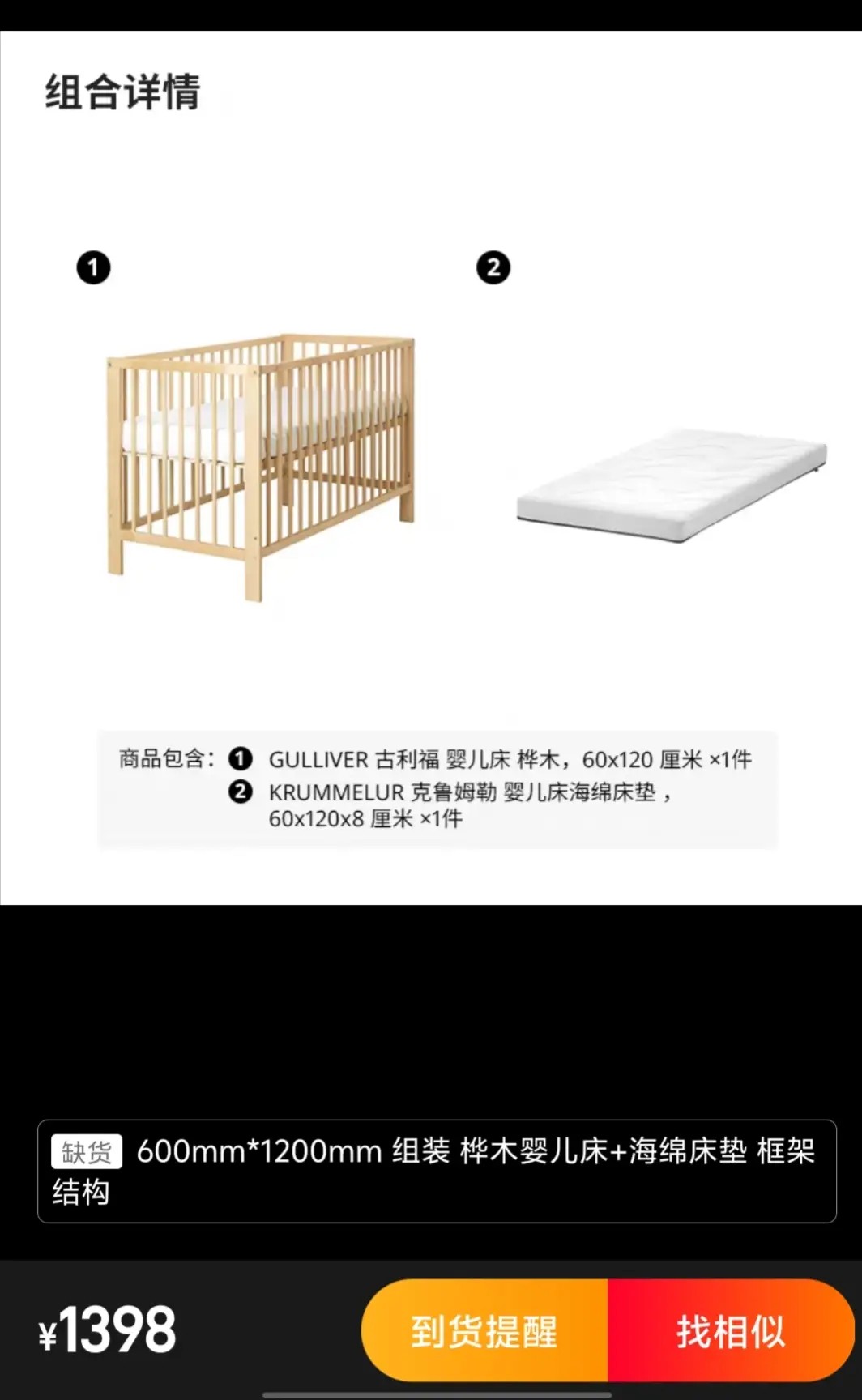 转让一个9.9成新宜家婴儿床
