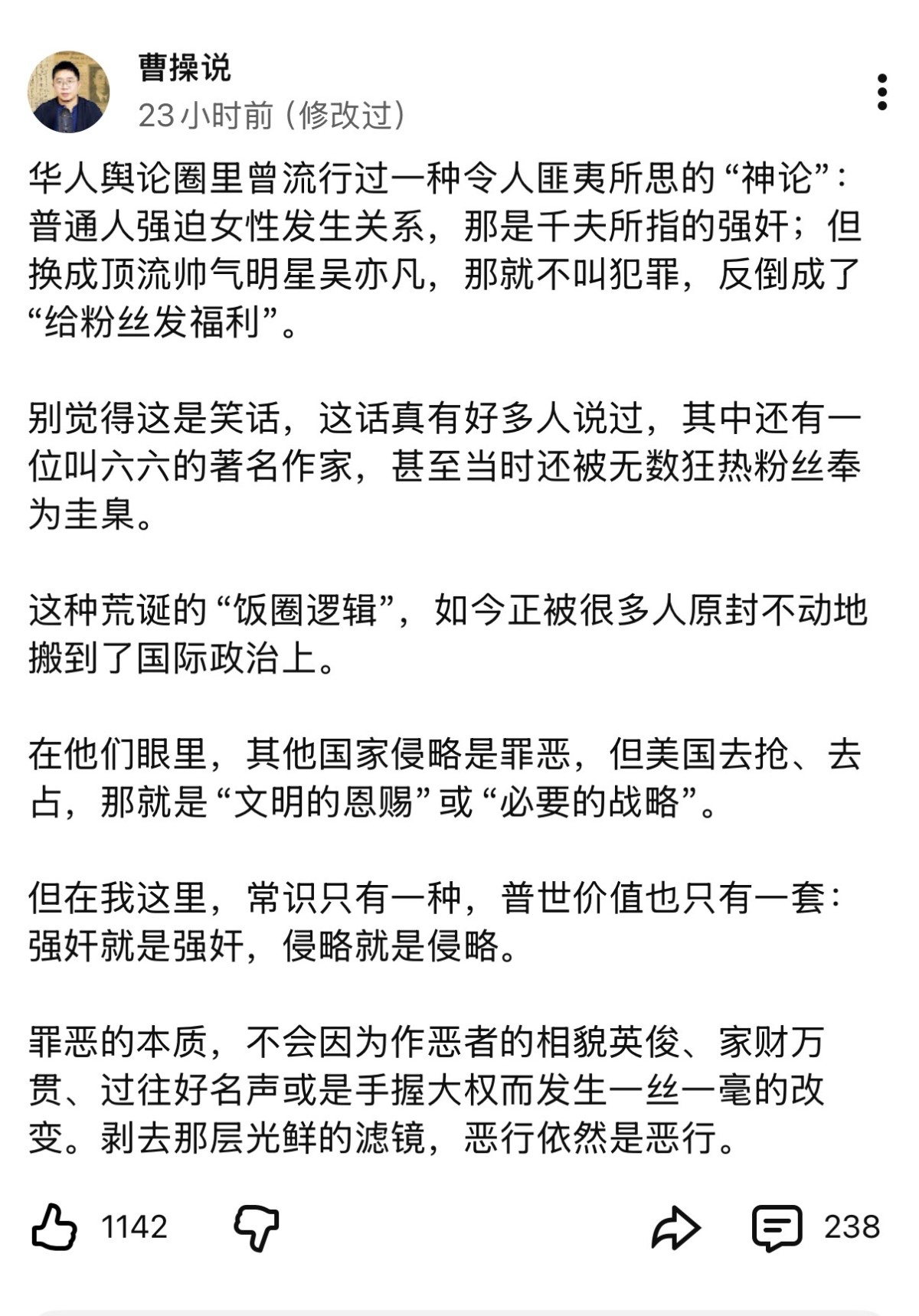 而与五毛群体相对的自由派群体,基本都工作忙碌,不愿喋喋不休,不愿将宝贵的时间用于跟五毛打嘴炮,更重要的是,都没有骚扰网友的记录。房网最著名的自由派代表人物“风云”,也只是晒一晒自己的身家和收入而已,而这恰恰反映了自由派人生普遍事业有成,收入很高的状况。