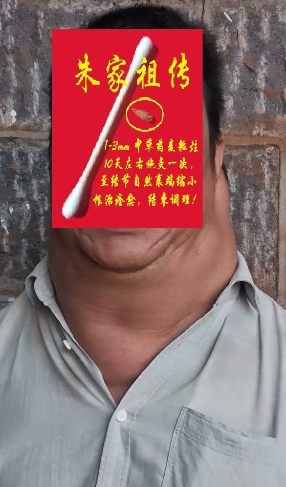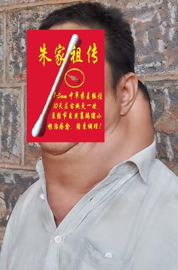 然后,年轻男患者又介绍这个男患者来调理(患者自述:2017年前,开始发现颈部有一肿物,到湛江某附属医院检查,医生诊断良性不用治疗,然后肿瘤继续增大增多,到广州某附属医院检查,还是以良性不用治疗。到后来,肿物越来越多,越来越大,医生说,还是良性,但想手术都不知道从哪下刀了,又无药可用)。