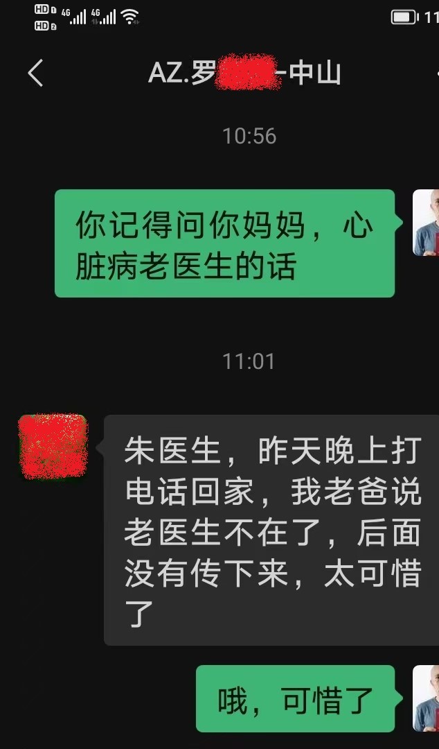我让患者联系她妈妈要老先生的联系方式。
