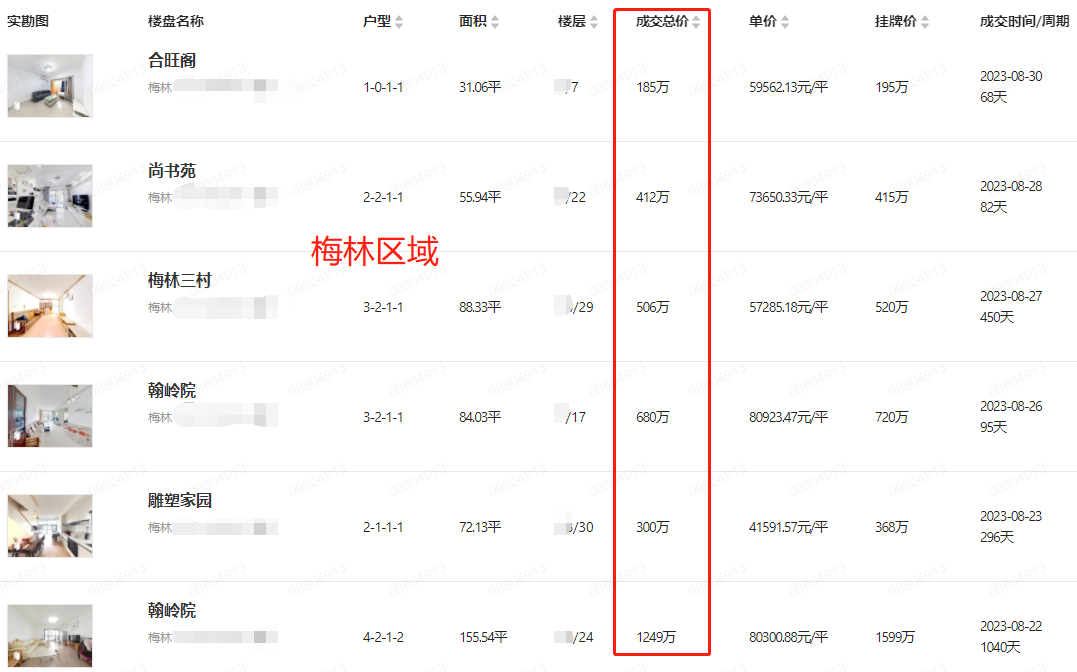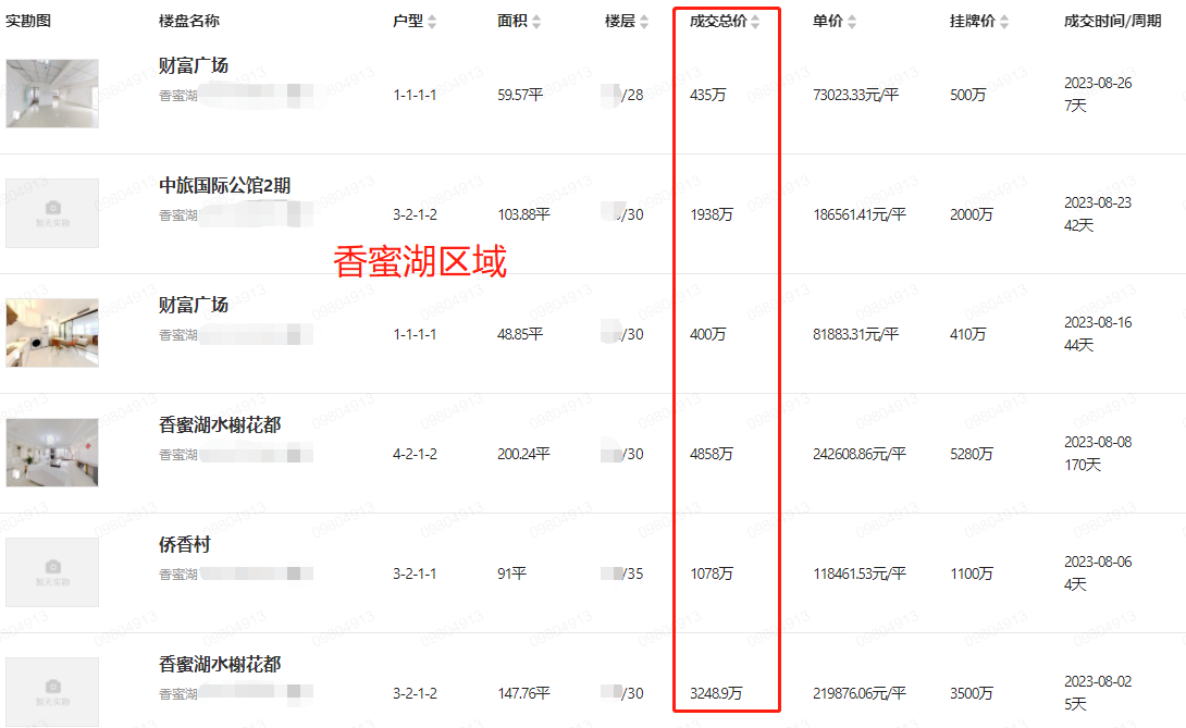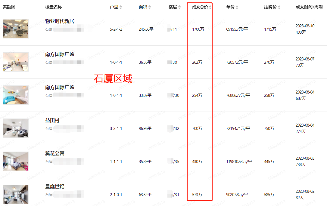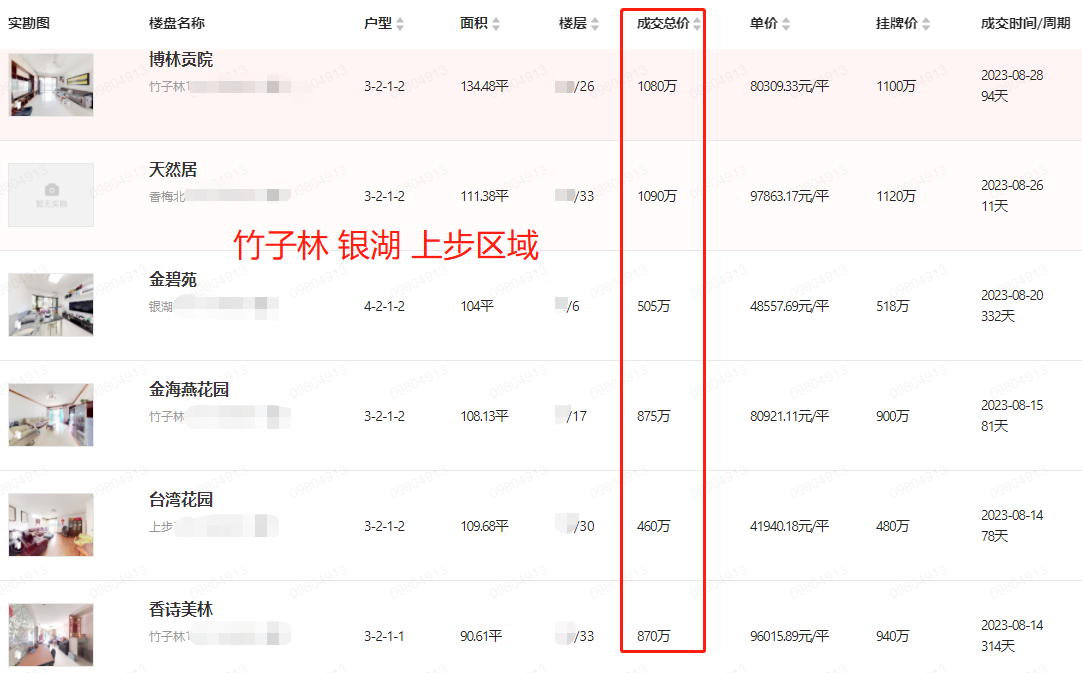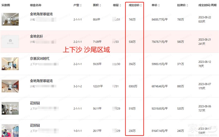内部资料 深圳 福田区 二手房 真实成交房源信息8月(2)