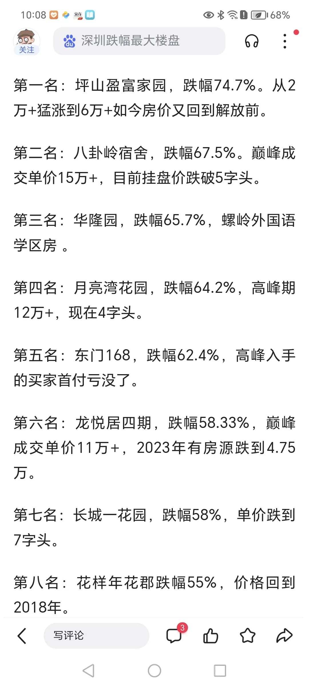 至于深圳房价有没有到底部,你来做多项选择吧?