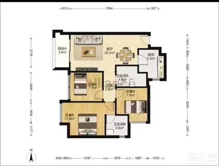 89㎡三房两厅两卫 高楼层全新