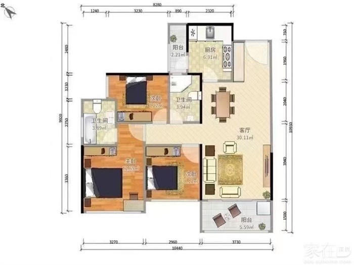 90平米3房2卫430万