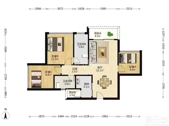 佳兆业三房两厅两卫,