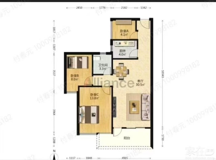 【居室】:3房2厅1卫