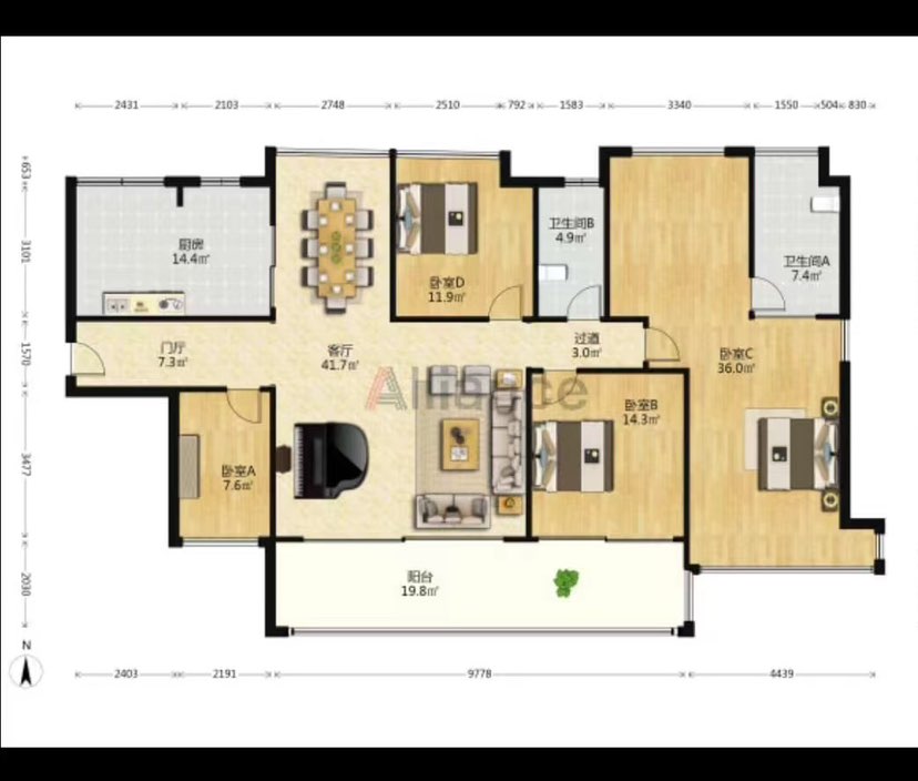 南北通透 跑马长阳台 原始五房改成了4房,报价728万