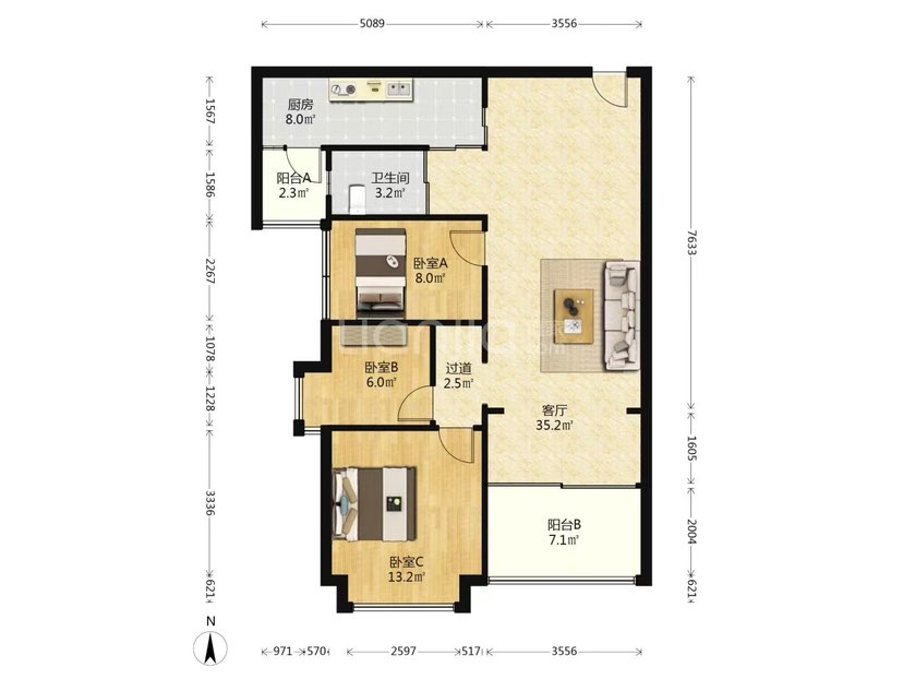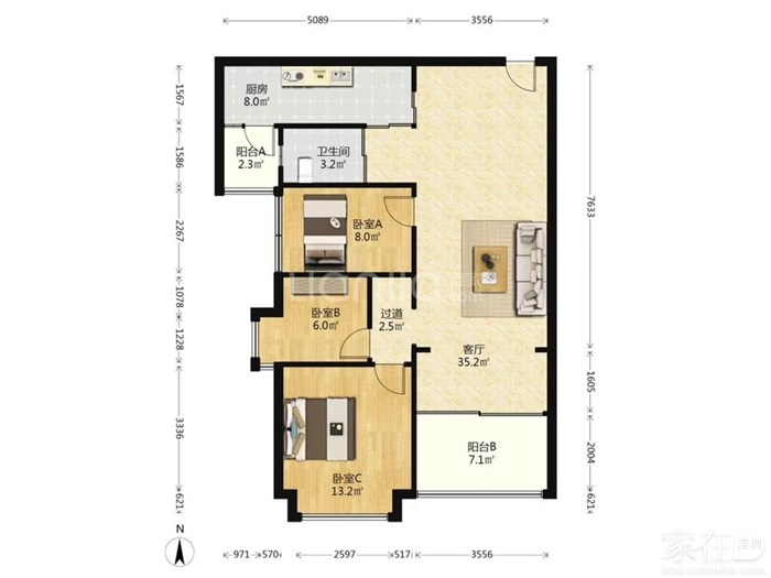 华业玫瑰郡 88平米精装三房 仅售295万