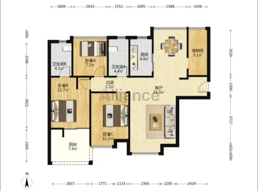 水蓝湾88平3房可改4房,套内95平使用面积,满五年学位在,一口价318万