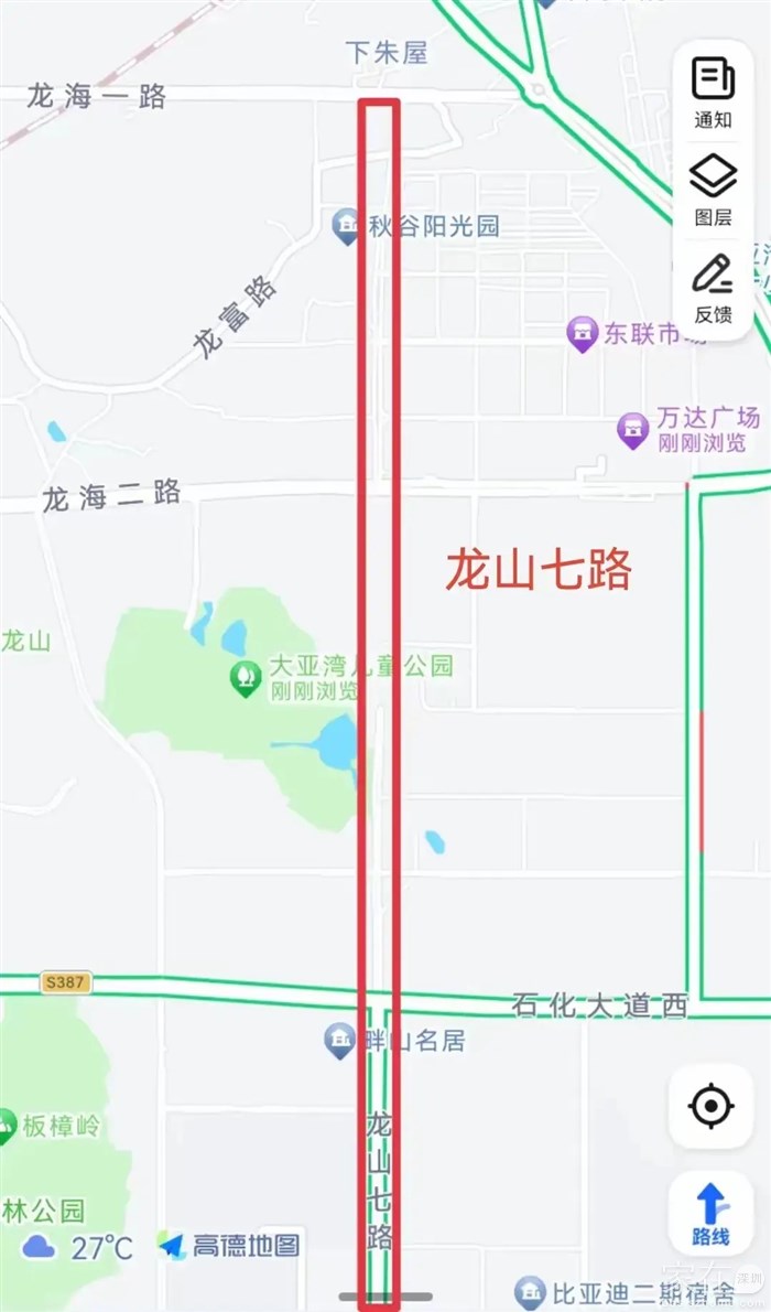 龙山七路是大亚湾纵向方向的其中一条主干道。北起龙海一路,南至龙海三路,其中龙海一路至龙海二路段,石化大道至龙海三路段早些年早已通车。近两年龙海二路至家悦龙庭南侧和儿童公园东门路段已逐步通车,眼看整条龙山七路就要全段通车,中间仅剩的几百米却又不知为何停工一年多不修了。儿童公园东侧那么高的石头山都挖走了,仅剩下几百米没什么工程难度的沙土路段却又停工不修了,实在令人费解。