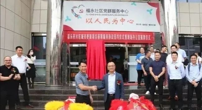 上午10点,签约暨揭牌仪式正式开始。首先由福星股份合作公司董事长陈家宜为仪式致辞,他表示,股份公司要抓牢粤港澳大湾区的建设机遇,充分利用资源,借助华润的品牌和专业团队,加快推进旧村改造工作,华润置地福永村项目部的落成揭牌,标志着旧改工作进入新的起点。
