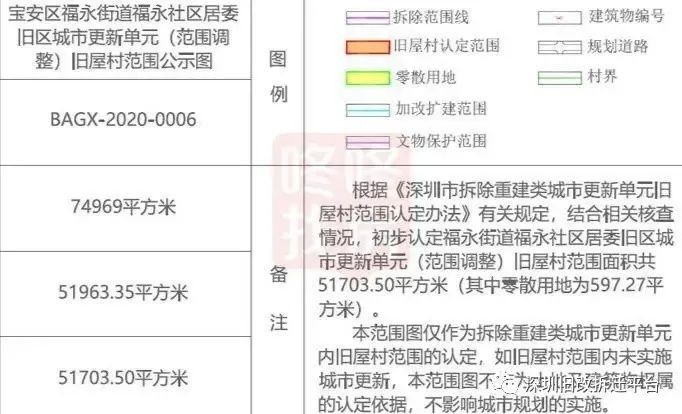 12月4日,宝安土地整备局发布关于福永街道福永社区居委旧区城市更新单元(范围调整)旧屋村范围认定的公示,12月11日,发布公示结果反馈,公示期间没收到如何反馈意见,也就是说该认定无人反对。