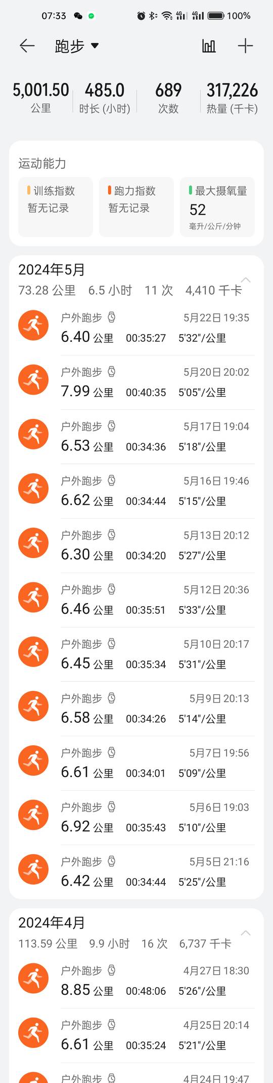 引用Nobody1的发言:我2021年开始跑,到现在4786km。马上50岁,年龄可能比你小一点,跑步配速比你慢一点(平均5分38)。