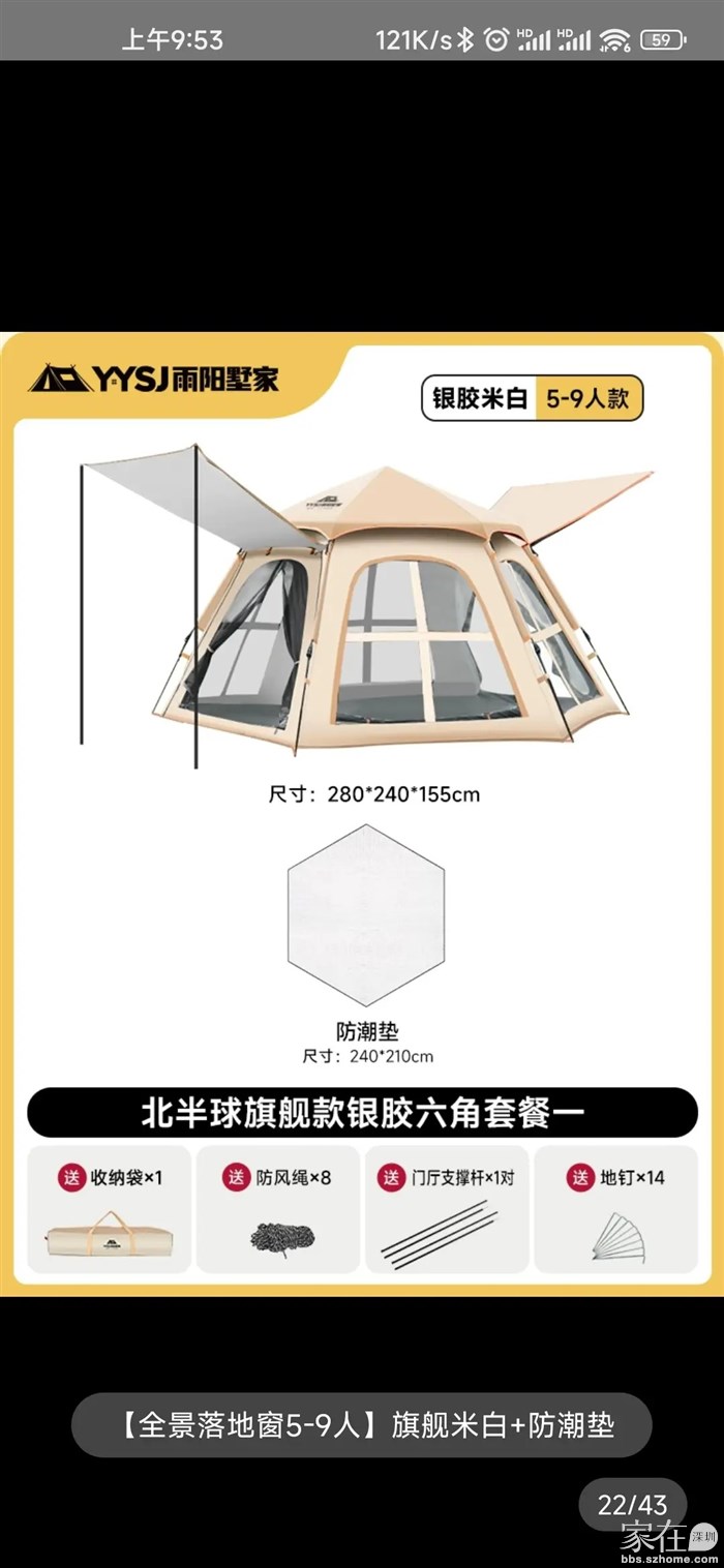 那就换掉,我已经有两个帐篷,不太好,所以昨天重新买了一个, 六角帐篷,规格*2.4*米,一家人用,够了。