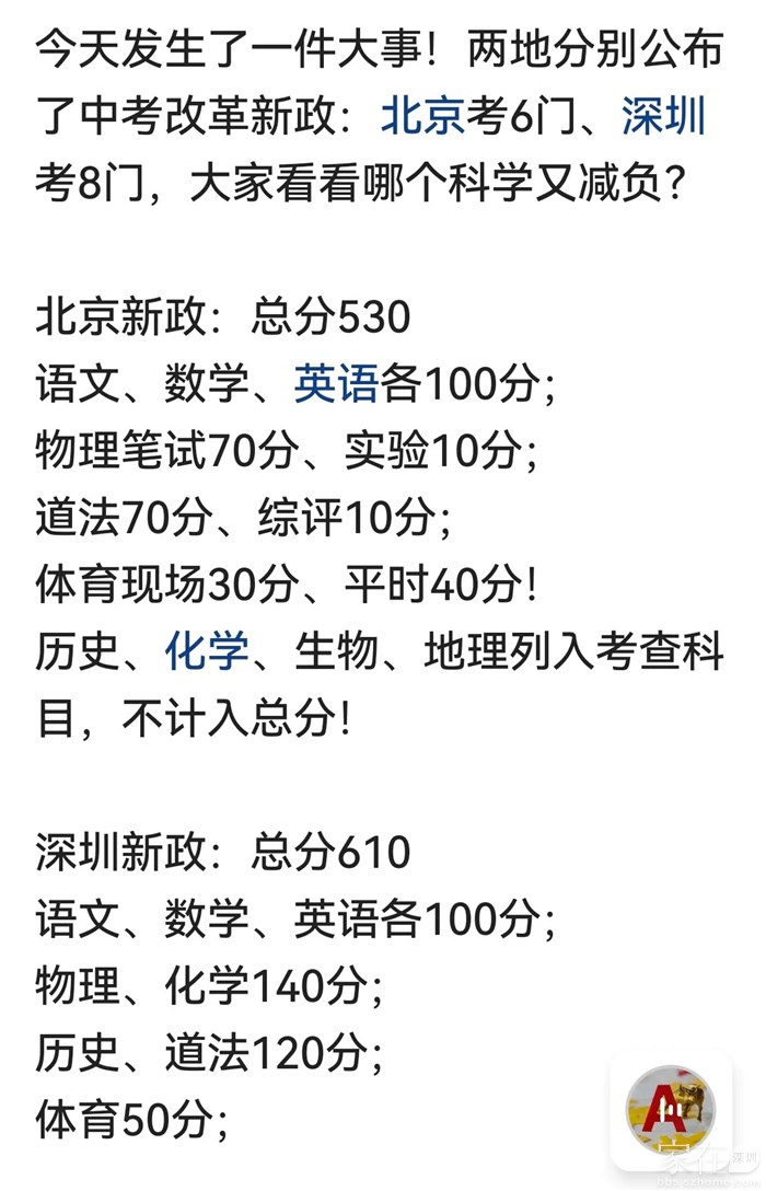 深圳中考规定摘要