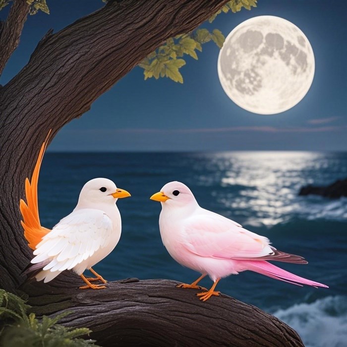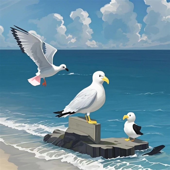 天亮了,粉燕蹦起来,抖抖羽毛:“那只橙色尾翼的海燕,我一定要找到他。”