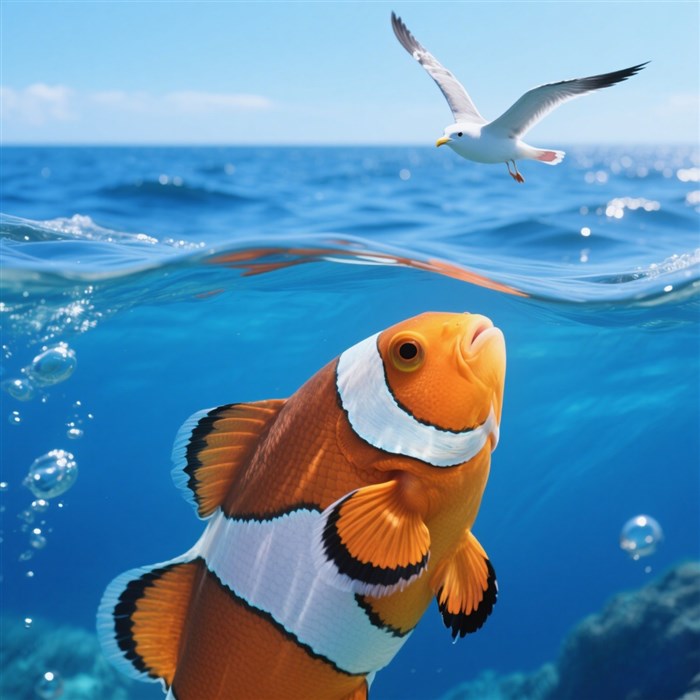 “别!我离水三秒就成咸鱼标本!” 小丑鱼叫道,“但我很会唱歌哟!”