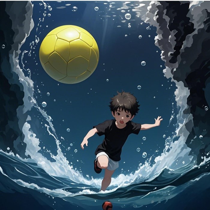 就在这时,一个小男孩追着黄色的足球,哗啦啦的大浪突然张开大嘴巴!