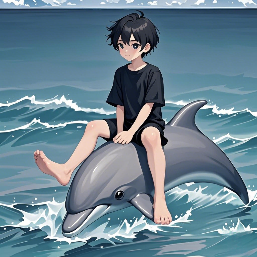 咚!海豚顶起小男孩。