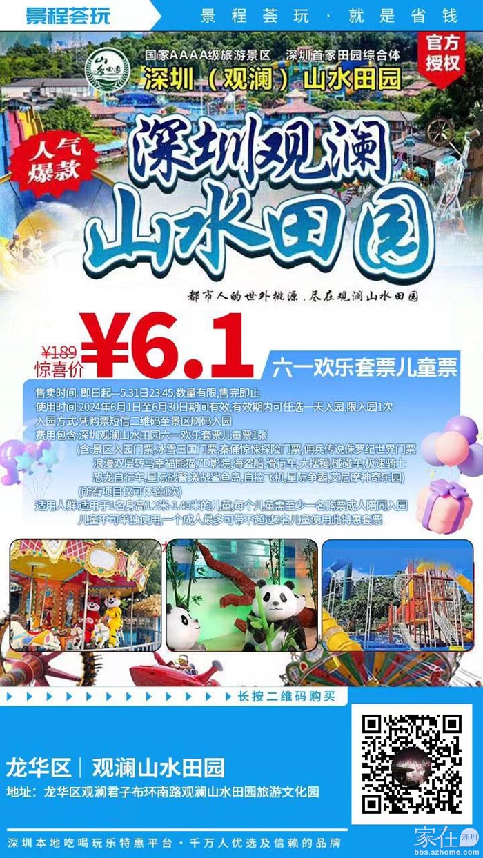 6.1元抢189元·深圳观澜山水田园『六一欢乐套票儿童票』