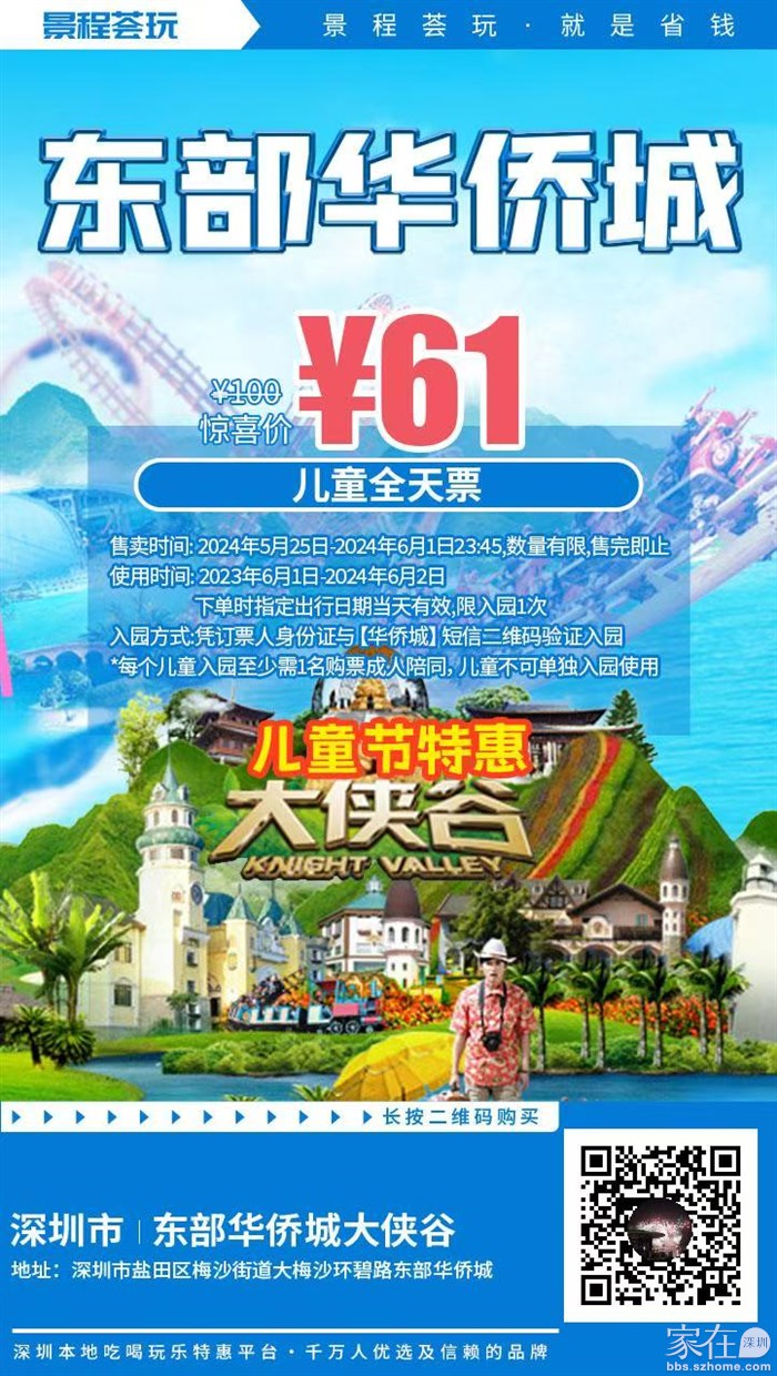 61元起抢100元·东部华侨城大侠谷『儿童全天票』