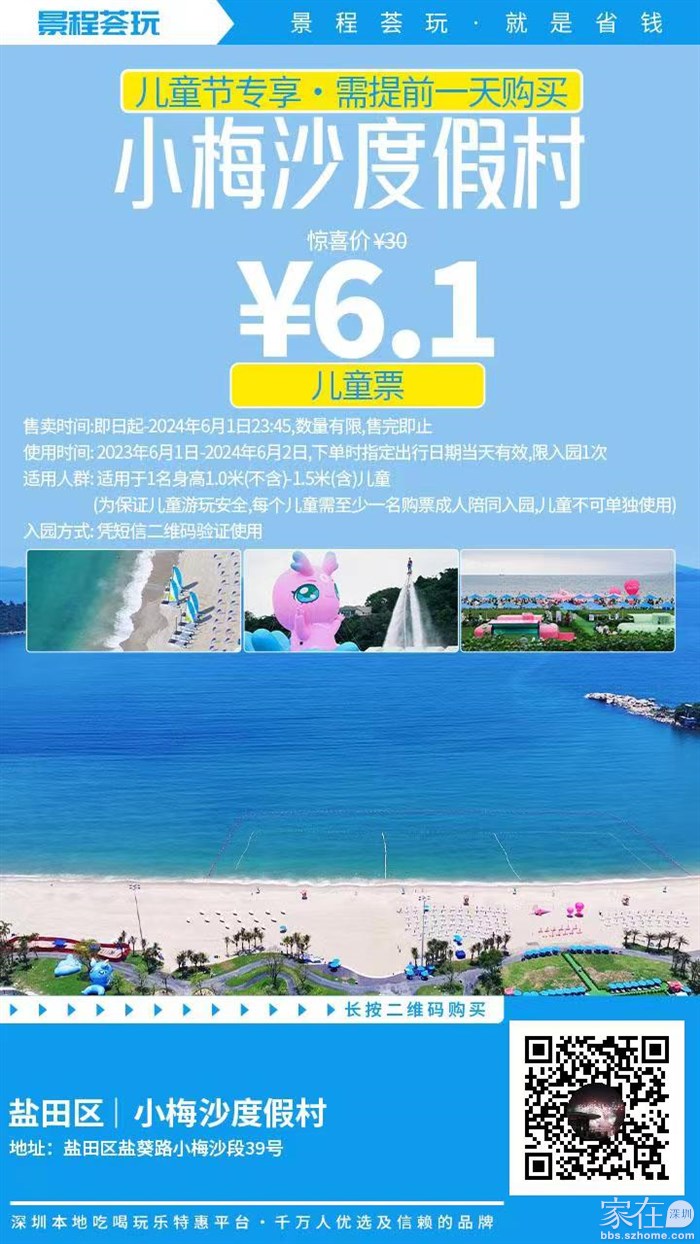 仅需6.1元抢30元小梅沙度假村『儿童票』