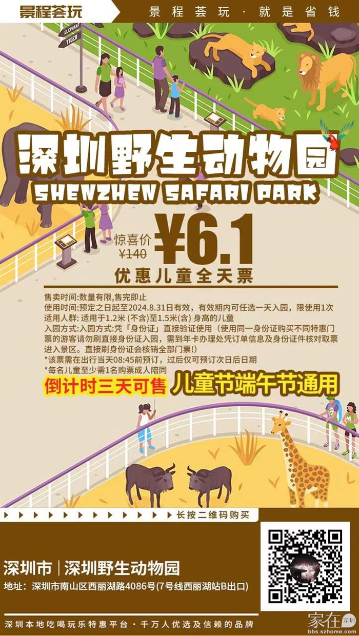 限量开抢!仅需6.1元抢140元深圳野生动物园『儿童全天票』
