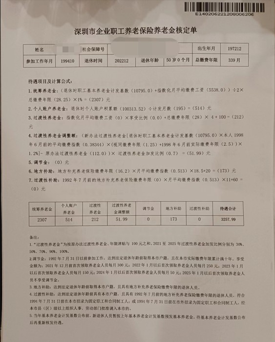 引用7楼楼主的发言:我是94年10月在老家县城一集体单位入职,2000年停薪留职南下深圳。2003年开始缴纳社保,中间换工作断了几个月,从2004年6月至2022年12月一直不间断缴纳社保,期间我于2006年以招工的名义入户深圳。大概在2006年老家单位倒闭清算,一次性帮员工从1996年1月至2006年12月补交132个月社保。这样就造成我重复交费48个月,办退休手续时,工作人员告诉我重复交费月份退内地部分,保留深圳。最终我在深圳的缴费年数是20年整,从内地湖南调入年数是7年,另有15个月(1994年10月1日至1995年12月)为视同缴费年限。